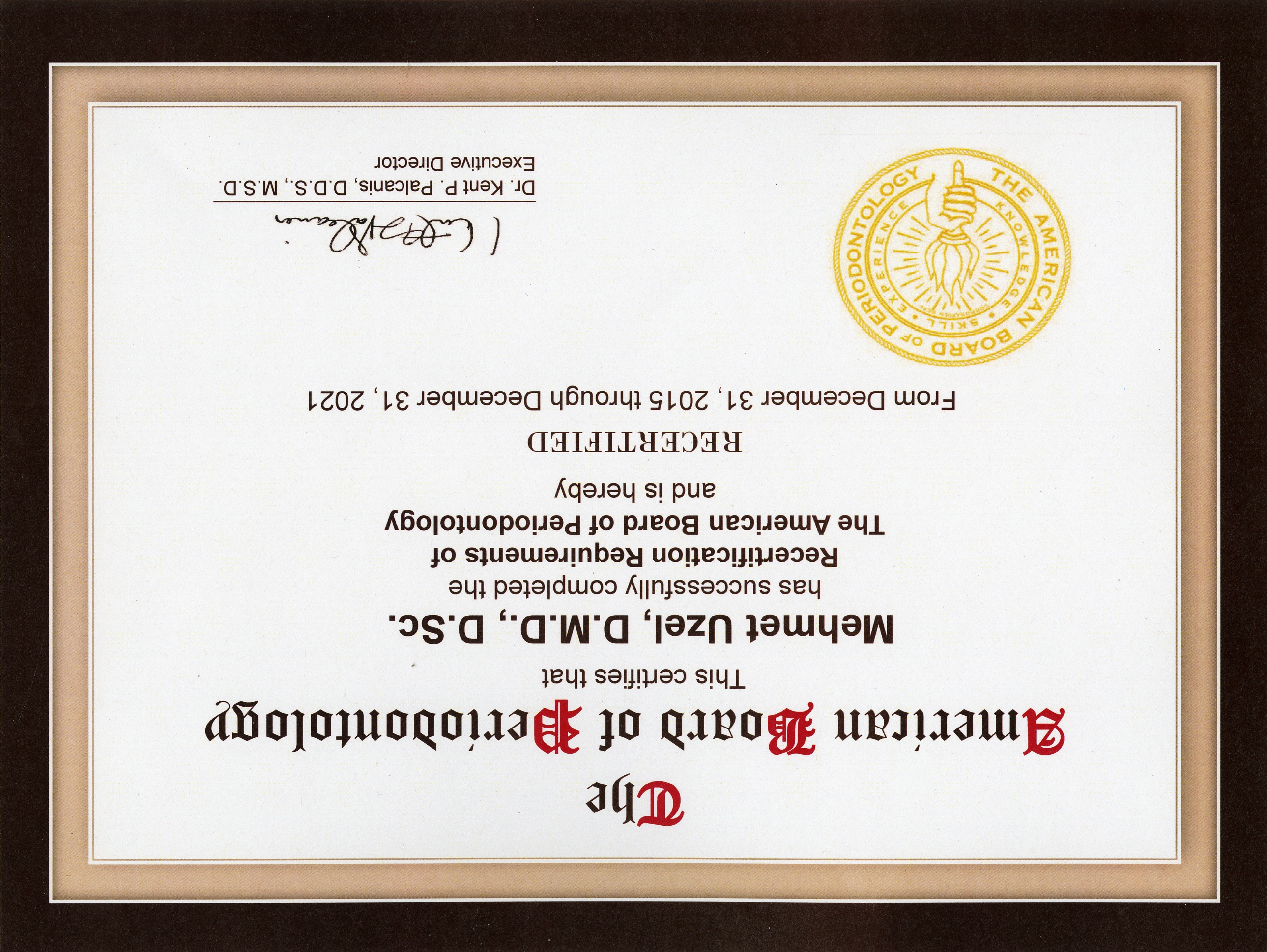 - 2001 - Certificate in Advanced Graduate Studies, (C.A.G.S. ) in Periodontology, Boston University